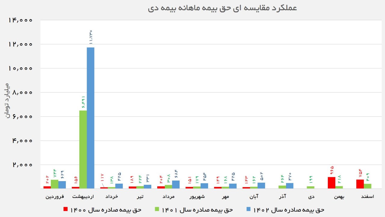 گزارش عملکرد 9 ماهه منتهی به آذر 1402 شرکت بیمه دی منتشر شد. بر اساس اطلاعات ارائه شده از سوی این شرکت بیمه ای، درآمد حق بیمه صادره (شامل قبولی اتکایی) شناسایی شده در این بازه زمانی رقمی معادل 15.643 میلیارد تومان بود. این رقم در مقایسه با درآمد شناسایی شده در مقطع مشابه سال قبل رشد 80 درصدی را رقم زد و به این ترتیب با رشد وارد فصل زمستان شد.
